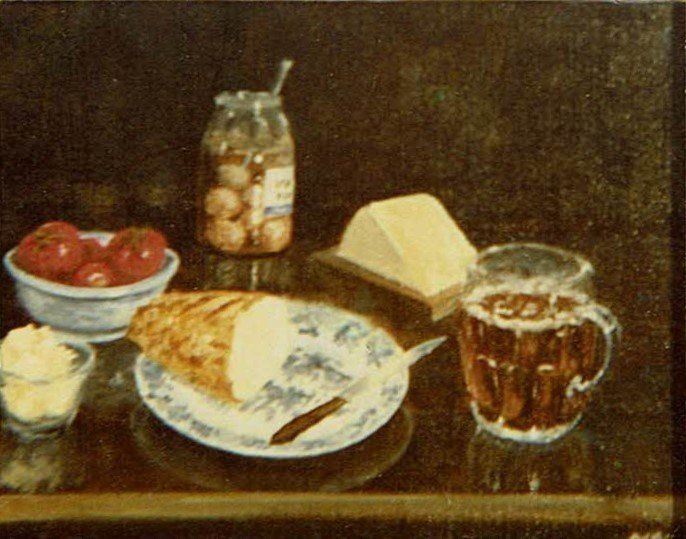 Whilst woodwork, games and gadgets appealed to him throughout his life, he took to painting only in retirement. He purchased oil paints as a birthday present for his wife initially but in the end it was he who took to using them! Some examples below with apologies for the quality of some images which are taken from old photographs of his work.